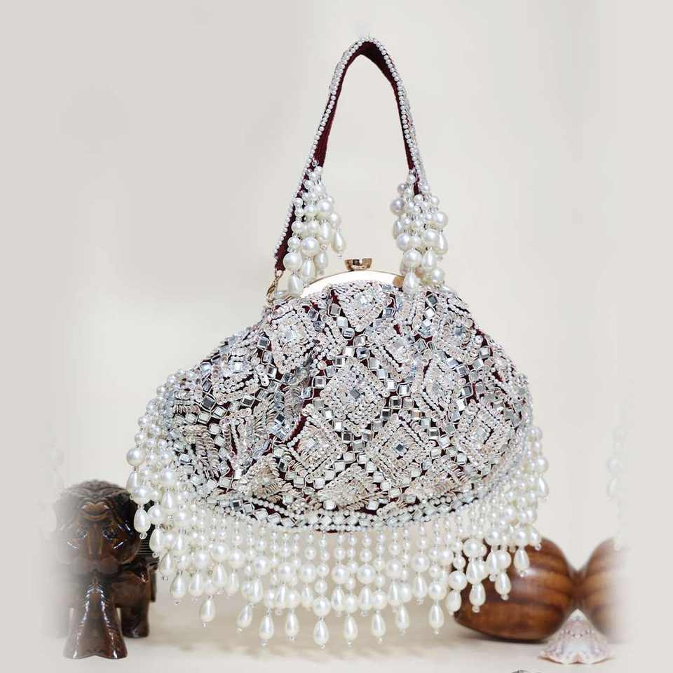 Wedding Party Clutch Bag with Mirror Work for Women Handmade Indian Ethnic Purse