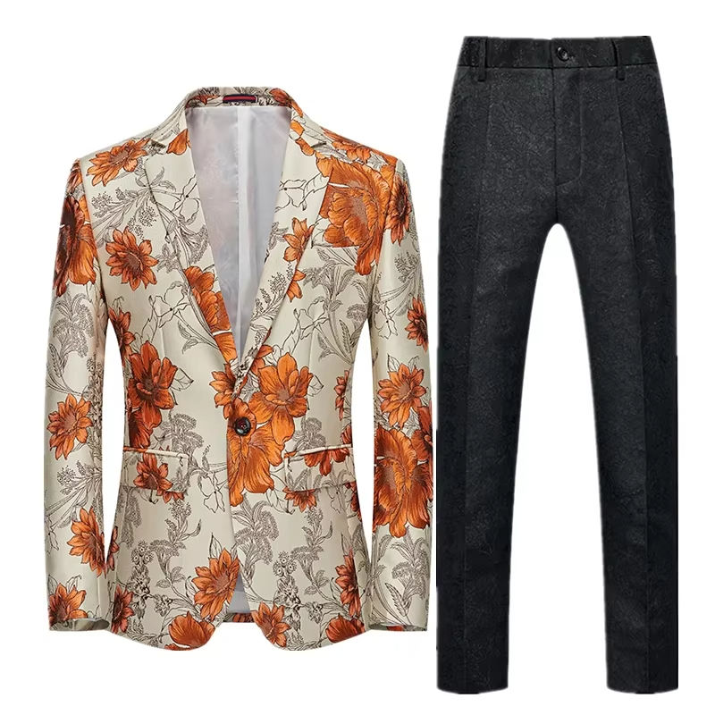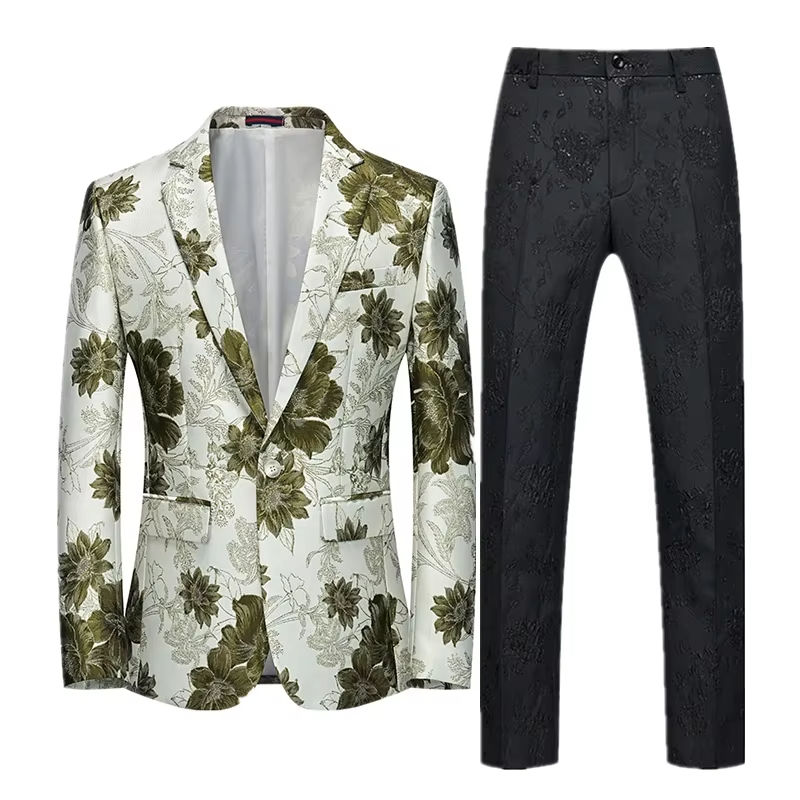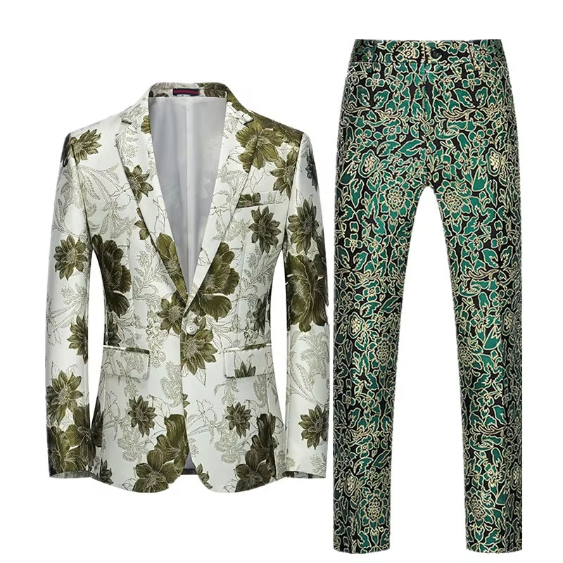 Wedding Party Printed Suit New Fashion Men Wedding Dance Party Flower Suit Costume Coat Pants Vest Outfit Festival Suit