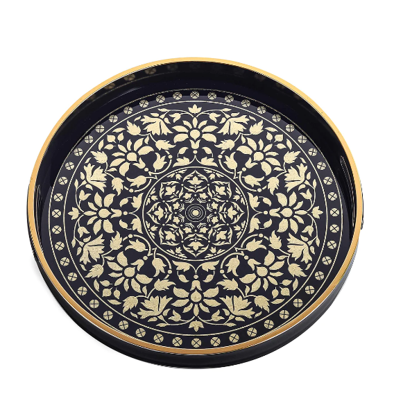 Wedding Party Tableware Sticker Enamel Printed Metal Tray Decorative Rounded Tray Stylish Handle Farmhouse Anti Rustic Tray