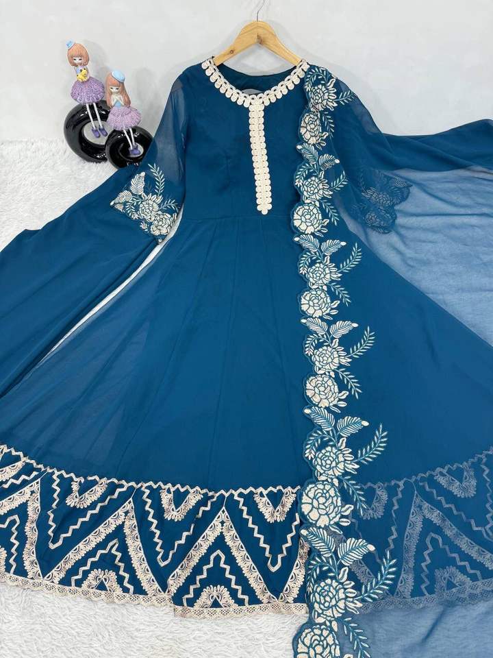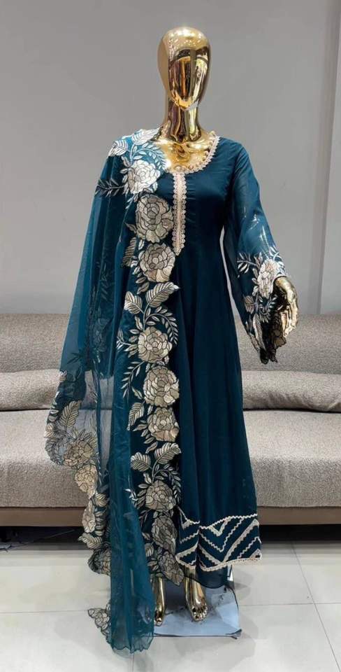 Product Name:Faux Georgette Chine Stitch Top Palazzo With Dupatta
