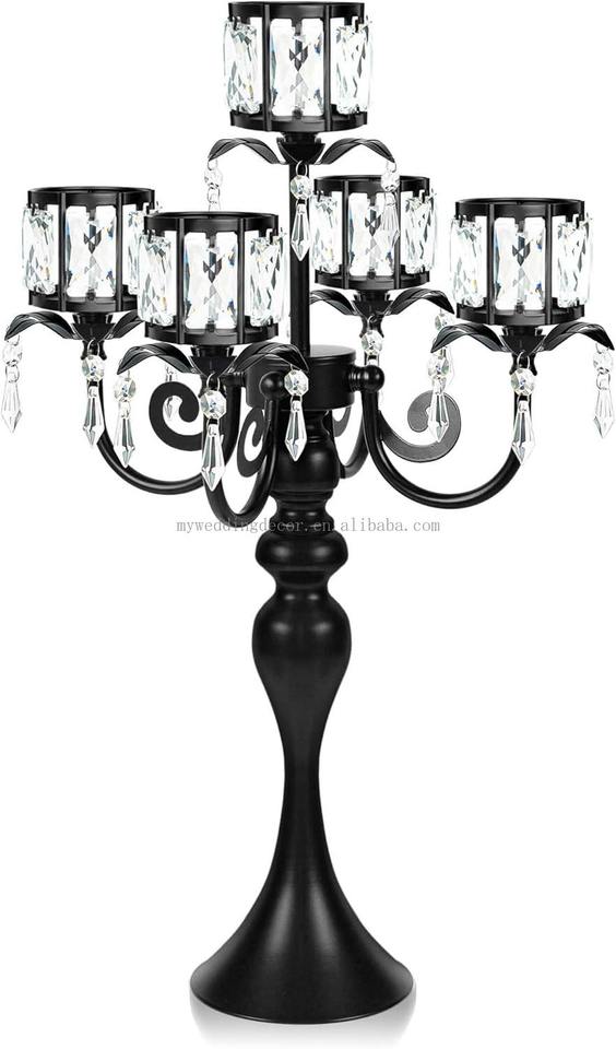 Wedding Pendant Metal Candle Holder with Square Crystal Bowl, 22-Inch Tall Wedding Table Centerpiece Gold 5 Arm Crystal