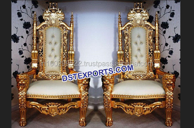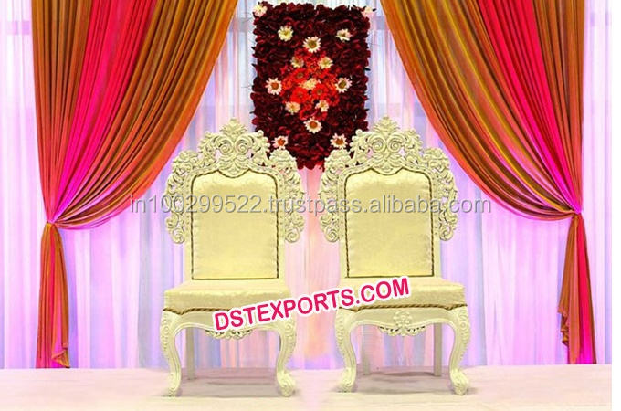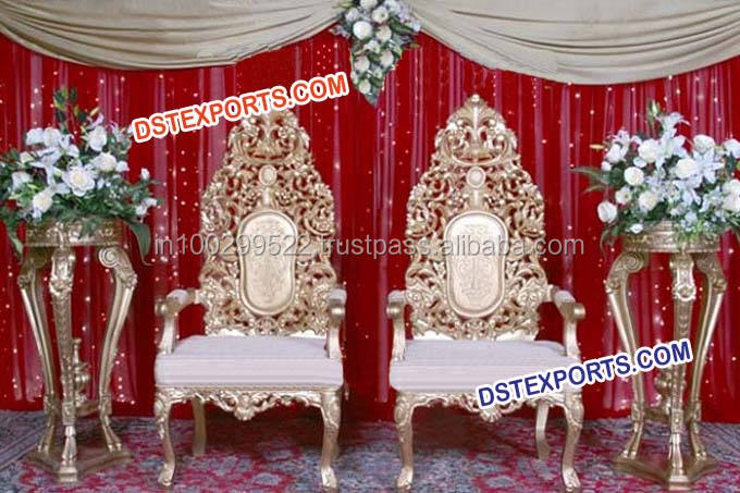 Wedding Stage Gold Chairs Wedding Wooden Carved Chair Set Wedding Jai Mala Stage Designer Chairs