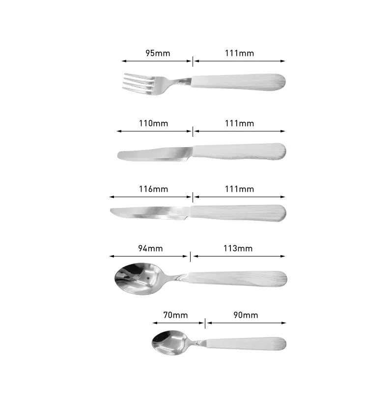 Including:Fork + Spoon + Knife + Tea Spoon