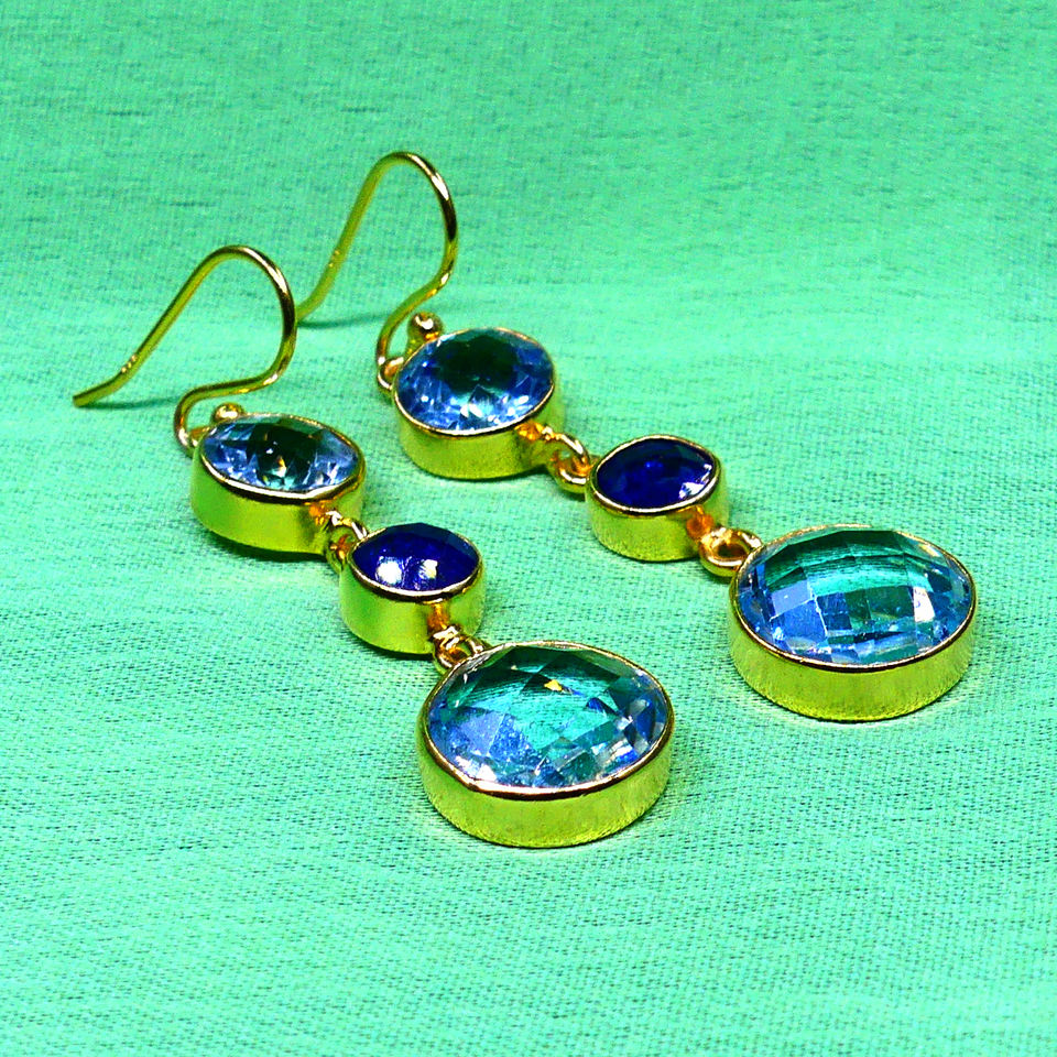 Wedding Wear 925 Sterling Silver Gold Plated Blue Topaz Sapphire Gemstones Classic Hanging Dangler Earrings