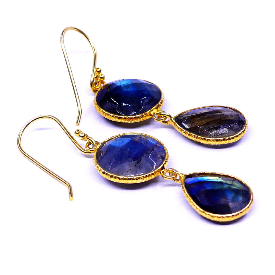 Wedding Wear 925 Sterling Silver Gold Plated Labradorite Gemstone Classic Hanging Ladies Wear Drop Earrings