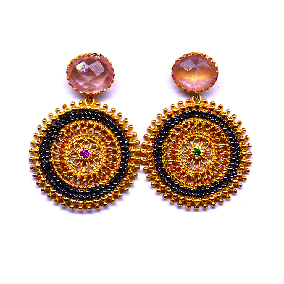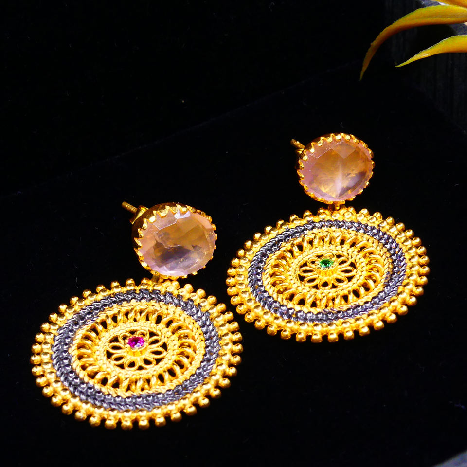 Wedding Wear 925 Sterling Silver Gold Plated Rose Quartz Gemstones Attractive Charm Ladies Wear Earrings
