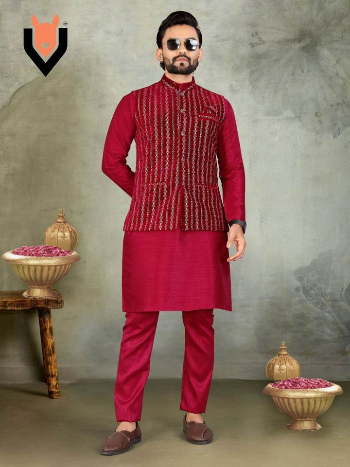 Product Name:Silk With Jari And Sequence Embroidery Work Mens Kurta Payjama