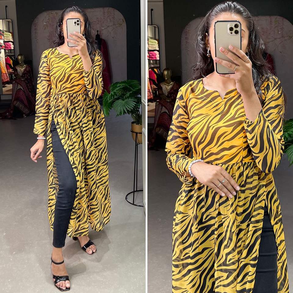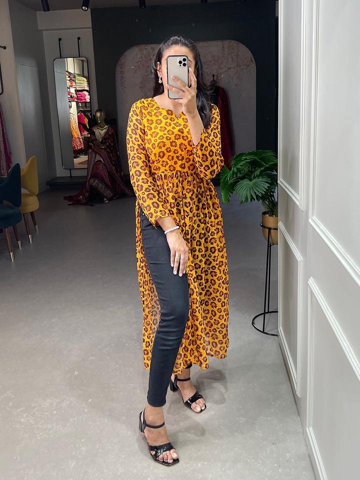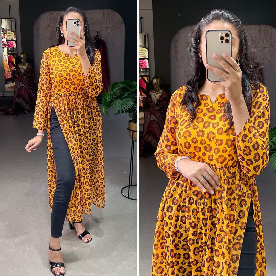 Product Name:Chiffon Kurti With Floral Printed Work