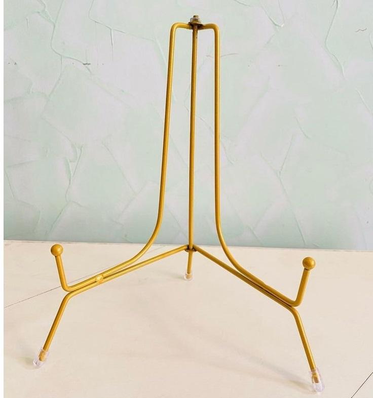 Wedding centerpiece metal plate stand with floral motif for supporting personalized plates or custom art at events