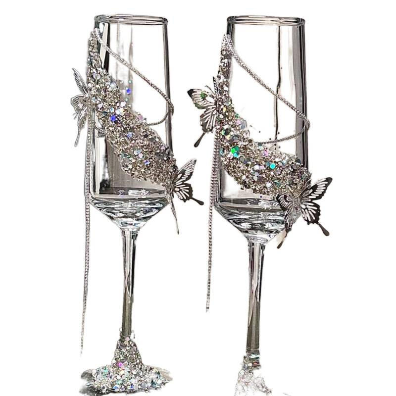 Color:A pair of Dynamic butterfly wine glasses (Finished product)