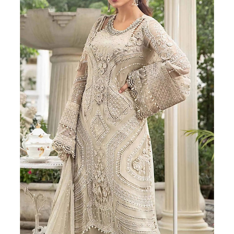 Wedding wear Bridal dress or women Embroidered Long Sleeves Dress for Women Breathable Fabric New Fashion Customize Bridal Dress