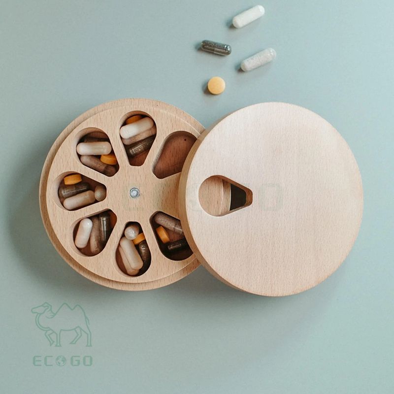Weekly Pill Organizer Weekly Wooden Vitamin Organizer, Pill Container 7 Day Magnetic Closure, Daily Pill Organizer Pill Box