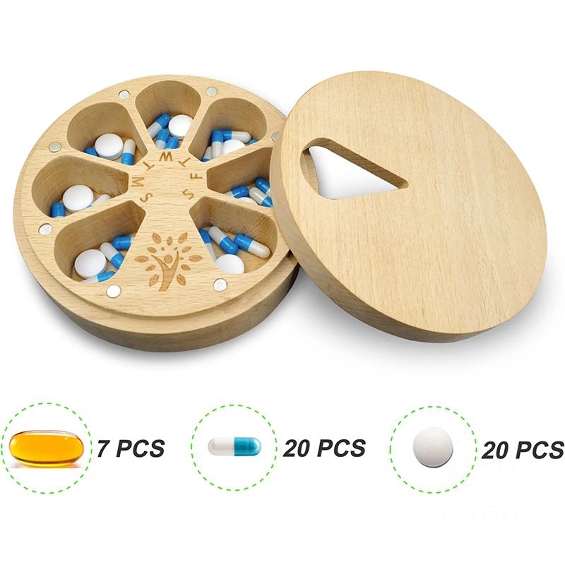 Weekly Wooden Pill Organizer, Travel Pill Box Pill Dispenser for Vitamin Medication