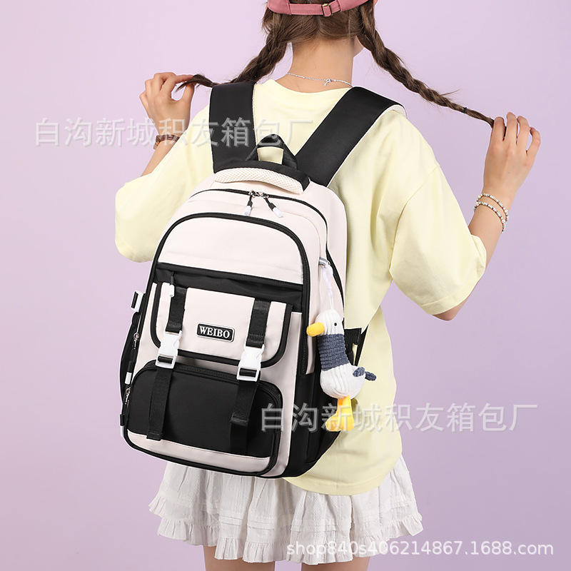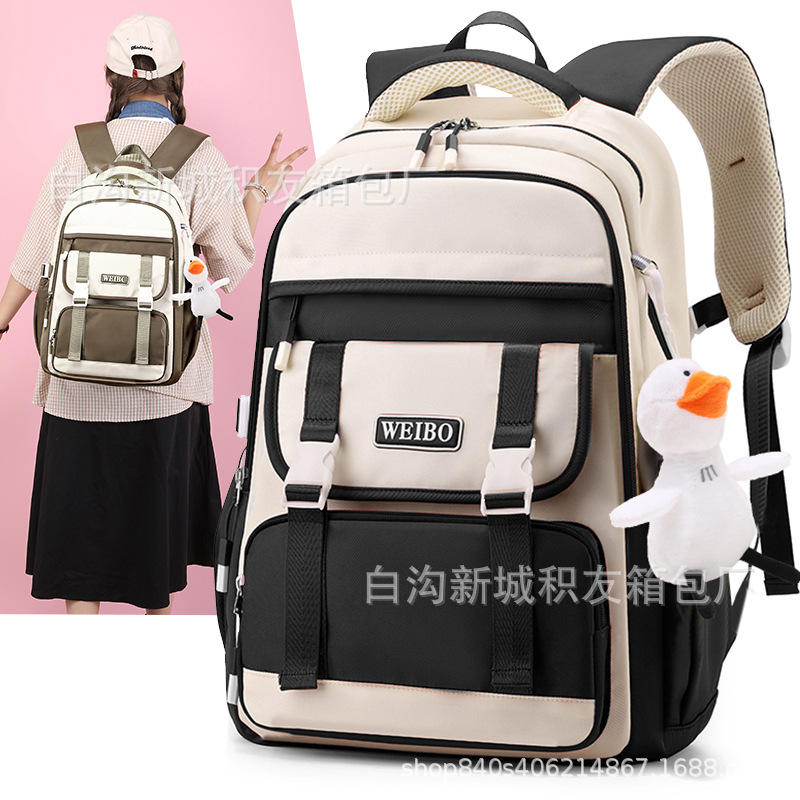 Weibo Student Backpack 18 In Color Blocking Large Capacity School Bag For Girls Spine Support Design