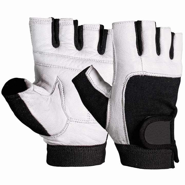 Customized Logo Unisex Comfortable Gym Gloves with White Leather+Amara Grip Sizes S-XL for Weight Lifting and Fitness Training