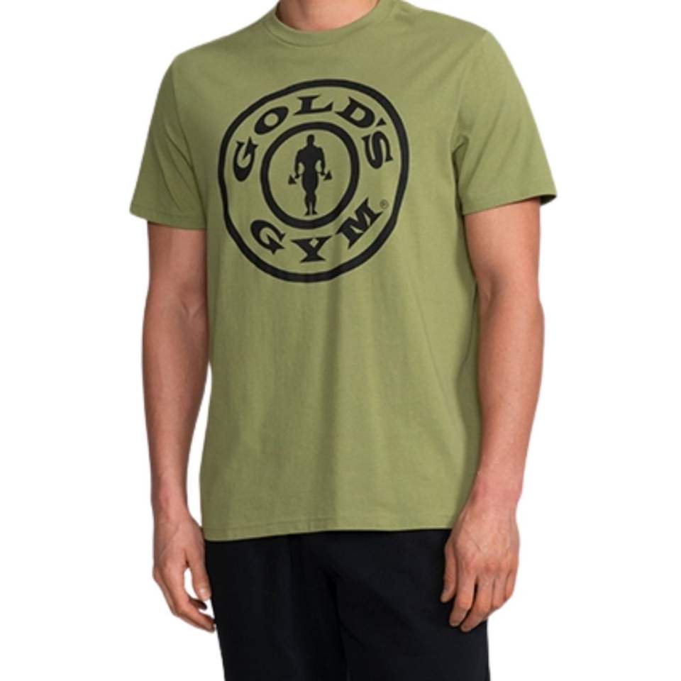 Weight Plate Sports T-Shirt Olive Organic Cotton Gym Tee Breathable Activewear Bodybuilding Fitness Shirt Regular Fit Golds Gym