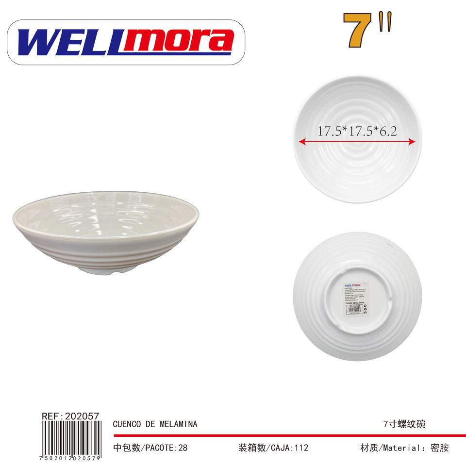 WelMora 7 Inch Melamine Bowl Threaded Design For Soup Noodle Serving Picnic Use