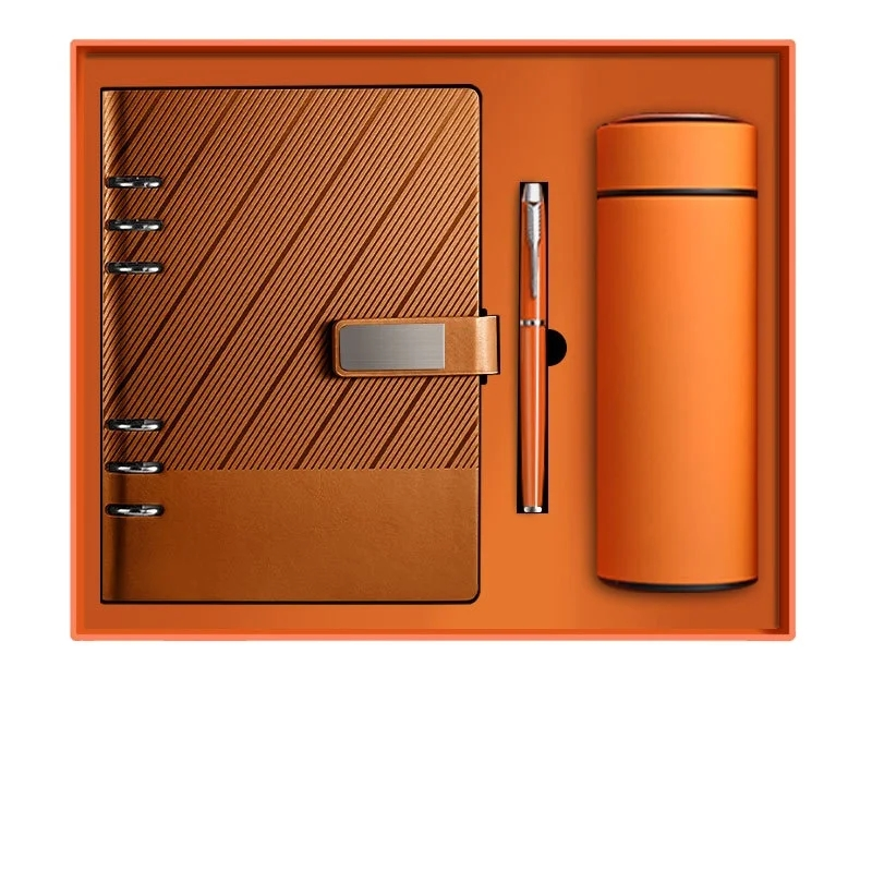Welcome Kits for Corporate Customized Portable Notebook and Pen Leather A5 Journal Cover Company Gift Box with Bottle Note Book