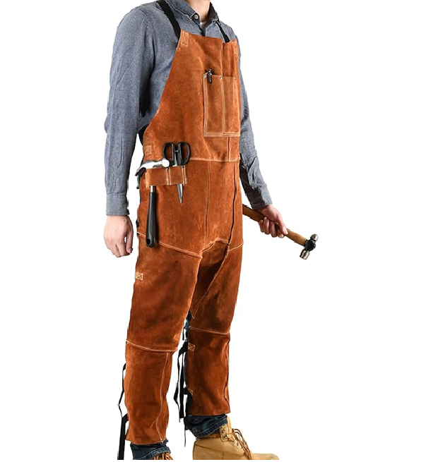 Welding Clothing Men Bib Overalls Safety Coverall High Temperature Leather Flame Retardant Repair Welder Strap Pants