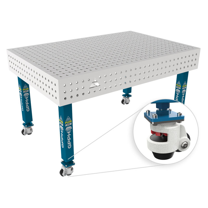 Welding bench with wheels SteelPlus INOX GPPH 1.5x1mt thickness 12mm, 16mm holes, 50x50mm grid