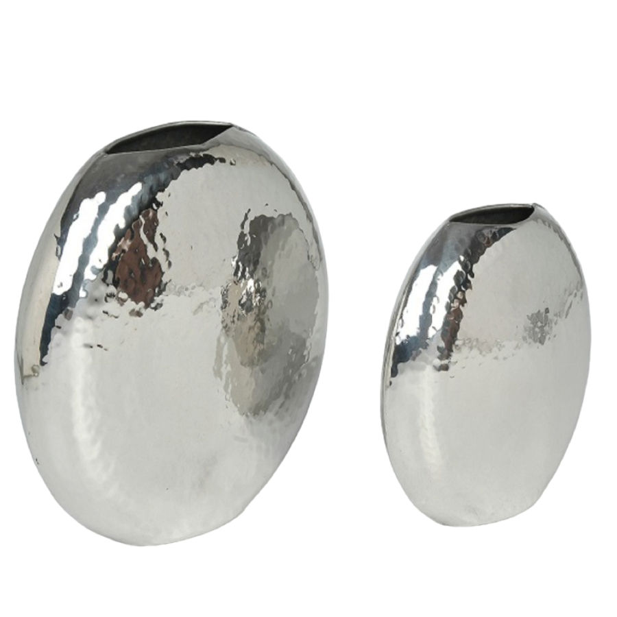 Well Polished Round Shape Set of 2 Hammered Design Modern Stainless Steel Metal Vases for Stylish Home Decoration