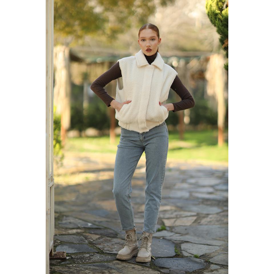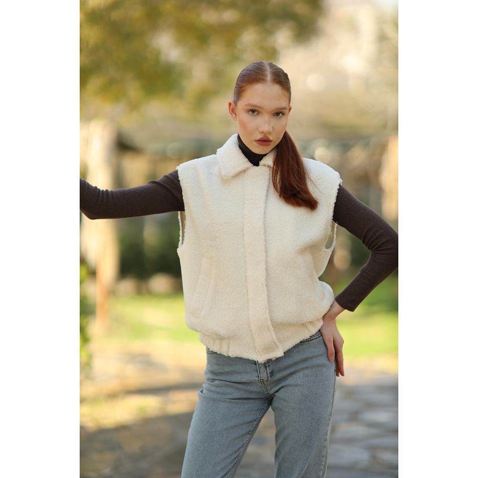 Welsoft White Woolen Fabric Custom Cut Vest Winter Casual Slim Fashion Top Embroidery Button Logo Decoration Cotton Filling