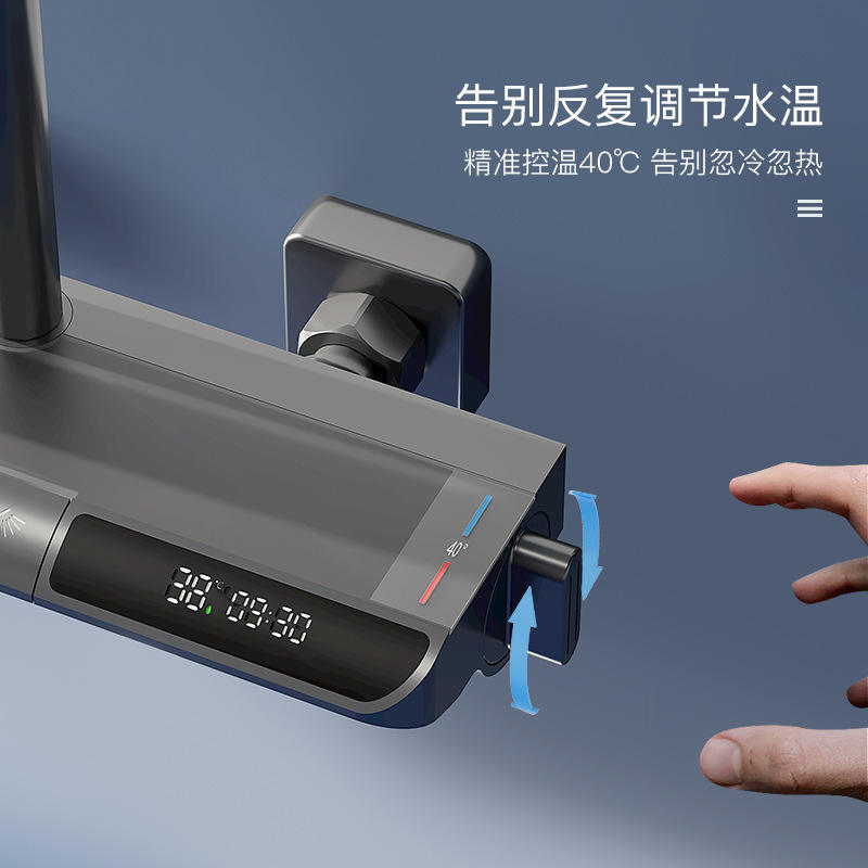 Wenba Bathroom Gun Gray Curved Piano Key Wall-Mounted Overhead Shower Set Full Copper Constant Temperature Hot Cold Booster Lift