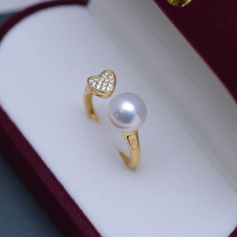 Wenchi 8-9mm Freshwater Round Pearl Ring Women S925 Silver Stylish Heart Love Adjustable Fit Strong Light Fine Flaws China