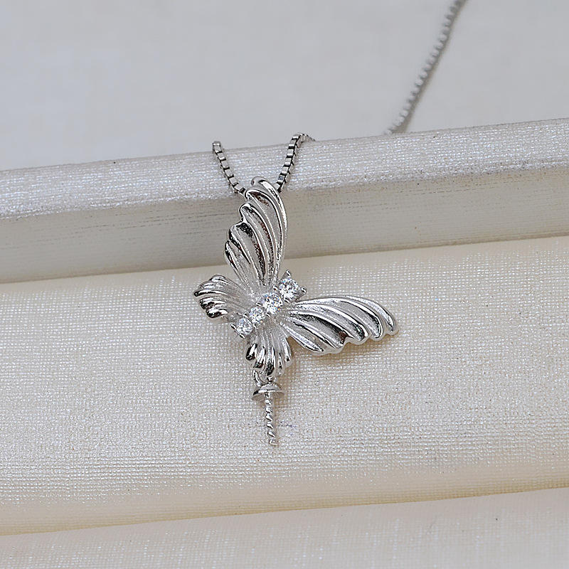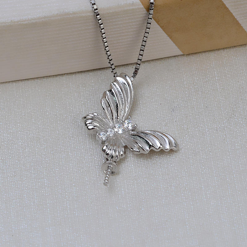 Wenchi Han S925 Silver Butterfly Pendant 8-16 Item DIY Pearl Jewelry Accessories Empty Tray 2027 Female Necklace Head Charming