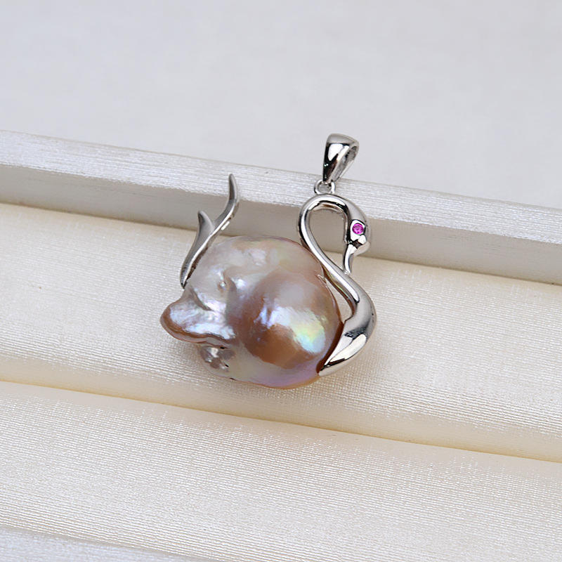 Wenchi Handmade S925 Silver Baroque Pendant Large Swan Double-Sided Necklace Pearl Hollow Base DIY Accessory Findings