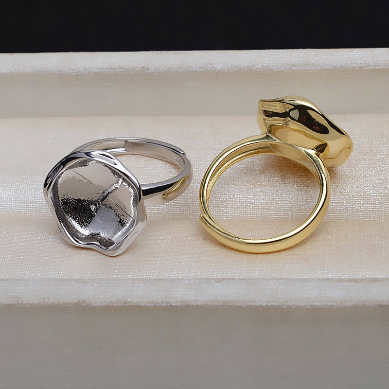 Wenchi S925 DIY Simple Baroque Ring for Women 14-16 Large Pearl Empty Holder Model 16624 Jewelry Accessories Oval Jump Rings