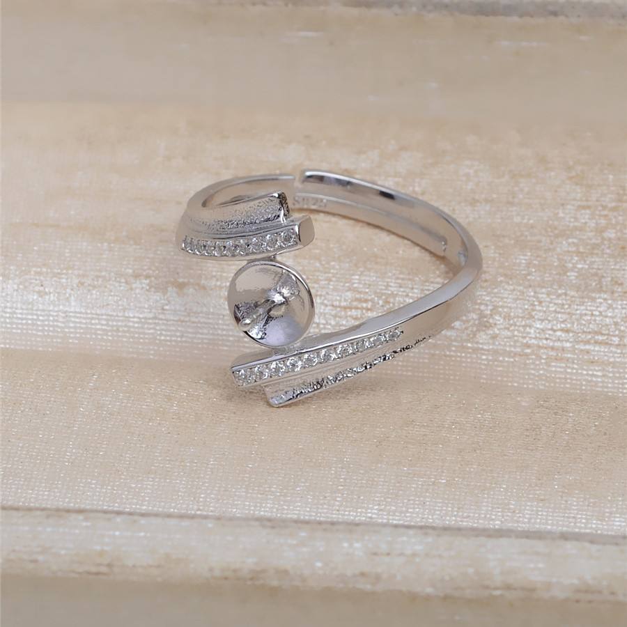 Wenchi S925 Pure Silver Accessory Ring Holder 16914 Cross Shaped Matte Finish Opening 8-10 Pearl Ring Empty Jewelry China
