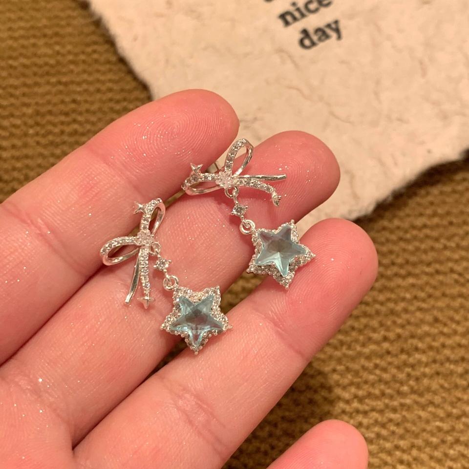 Wenchi S925 Pure Silver Cool Feeling Bow Earrings High-End Starry Sky Blue Star Dangle for Women Sweet New Release China