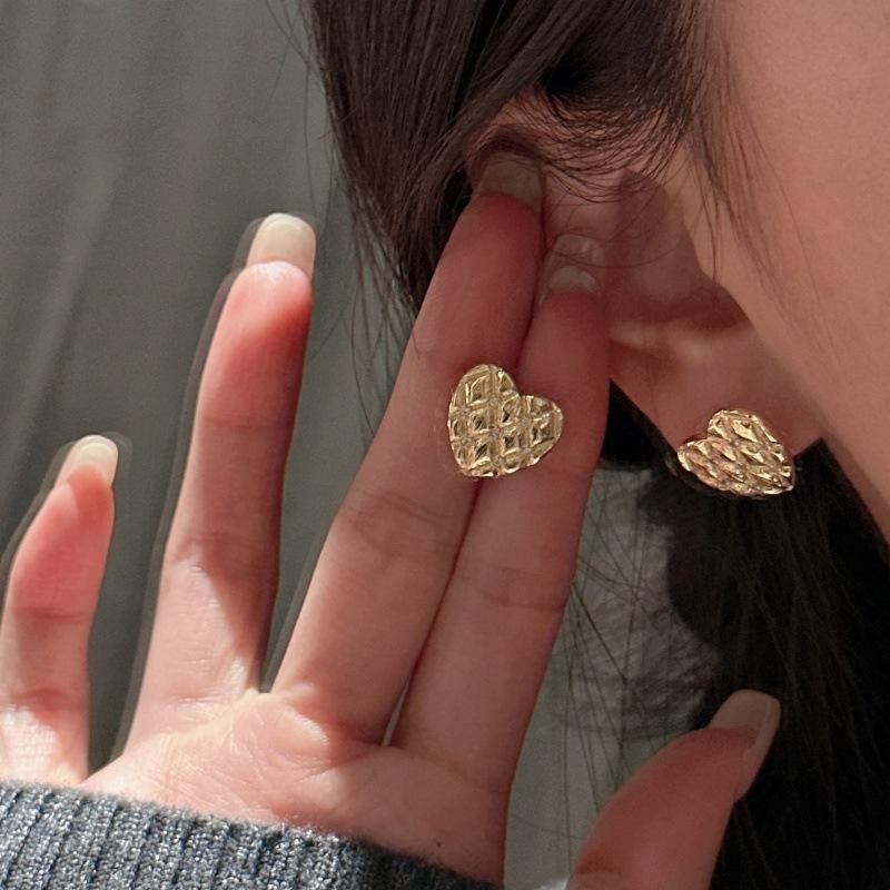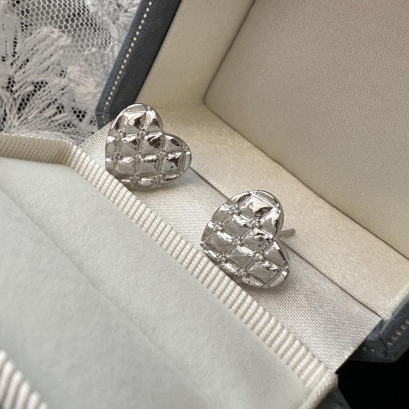 Wenchi S925 Pure Silver Diamond Grid Heart-Shaped Stud Earrings Luxury European American Cross-Border Fashion Niche Design Model