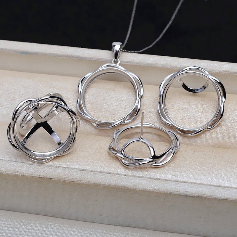 Wenchi S925 Silver 15518 DIY Accessory Set 20mm Pearl Horse Shell Flat Bottom Empty Earring Pendant Holder Jewelry Making Beads