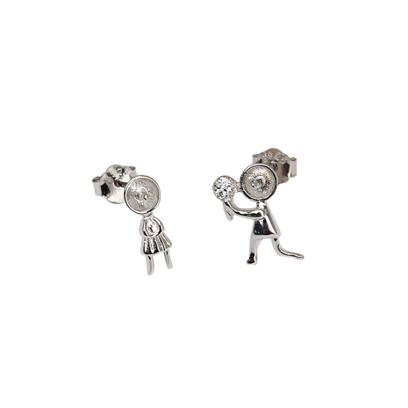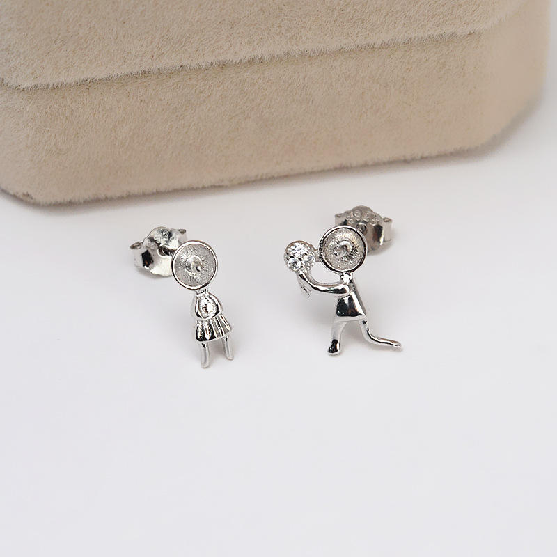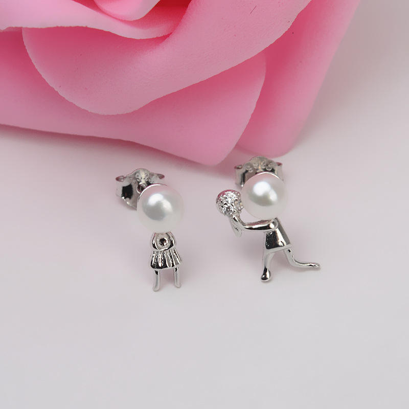Wenchi S925 Silver Checkerboard Pattern Earrings with Bow High-End 7-8 Pearl Hollow Ear Support 5676 Collection Model 16138