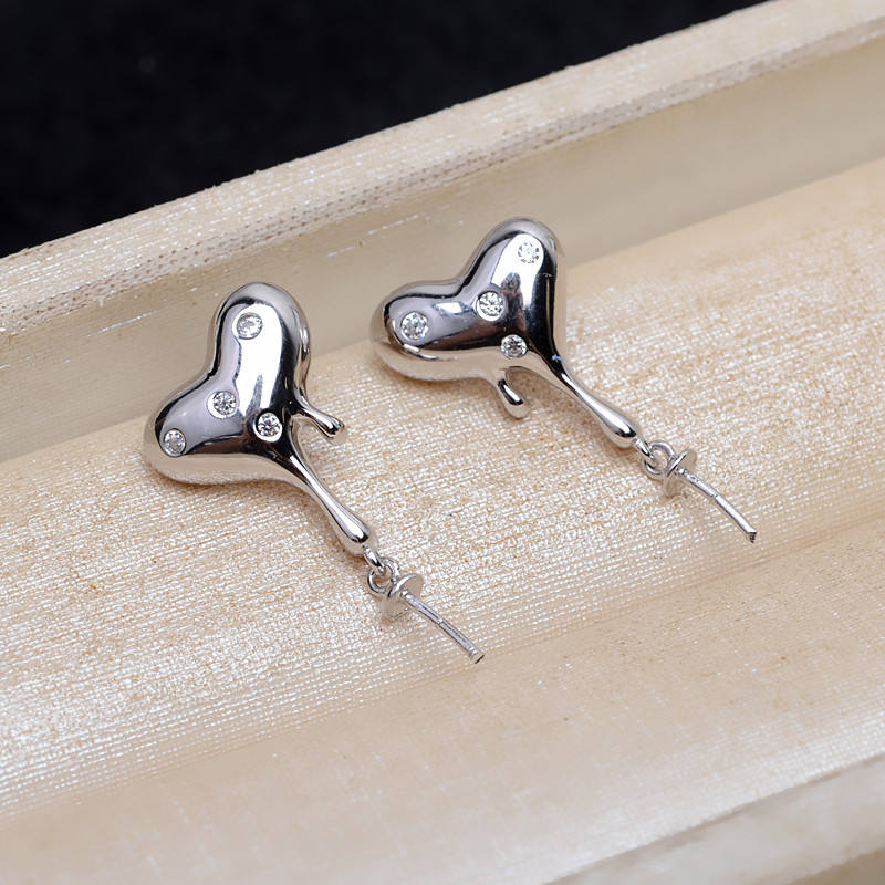 Wenchi S925 Silver DIY Pearl Earpin Double Ring Earring Accessory Stand 6-7 Smooth Pearl Empty 16271 Jewelry Findings Components