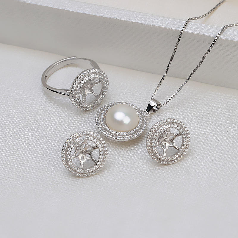 Wenchi S925 Silver Earpin High Trendy 10-11 Pearl Versatile Female Earring Empty Support Fine Jewelry Sets Model 15903