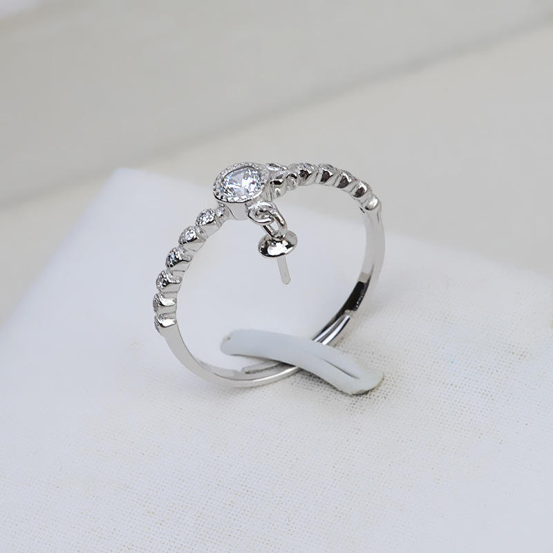 Wenchi S925 Silver Open Female Finger Ring Adjustable DIY Pearl Jewelry Empty Tray 243 Jewelry Findings Components Model 16850