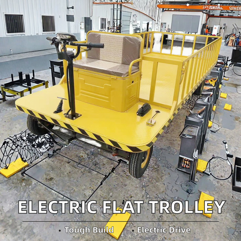 Wendy China Logistics Steel Electric Flat Trolley New Cargo Carrier Flatbed Transport Car Seat Electric Flat Car/Trolley for