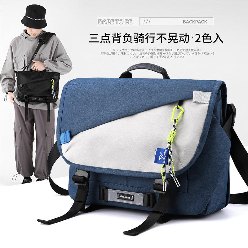 Wepower Men's Messenger Bag Large Nylon Durable Crossbody Bag For Everyday Use Solid Color With Embossed Logo