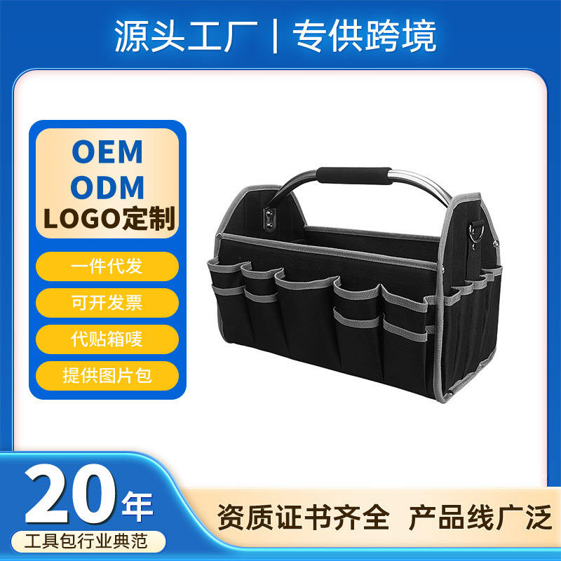 Wessleco Tool Duffle Bag 15-19 Pockets Top Handle Oxford Cloth Tool Storage Bag For Hardware And Construction Use