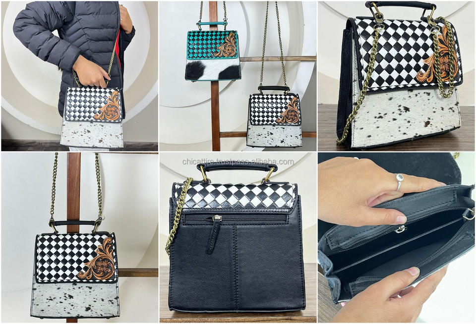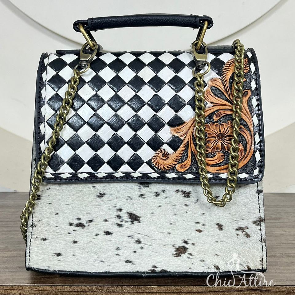 Product name:Hand Tooled Checkered Leather Crossbody Bag