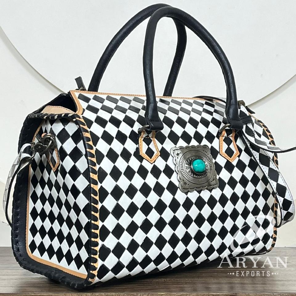 Product name:Hand Tooled Checkered Leather Large Speedy Bag