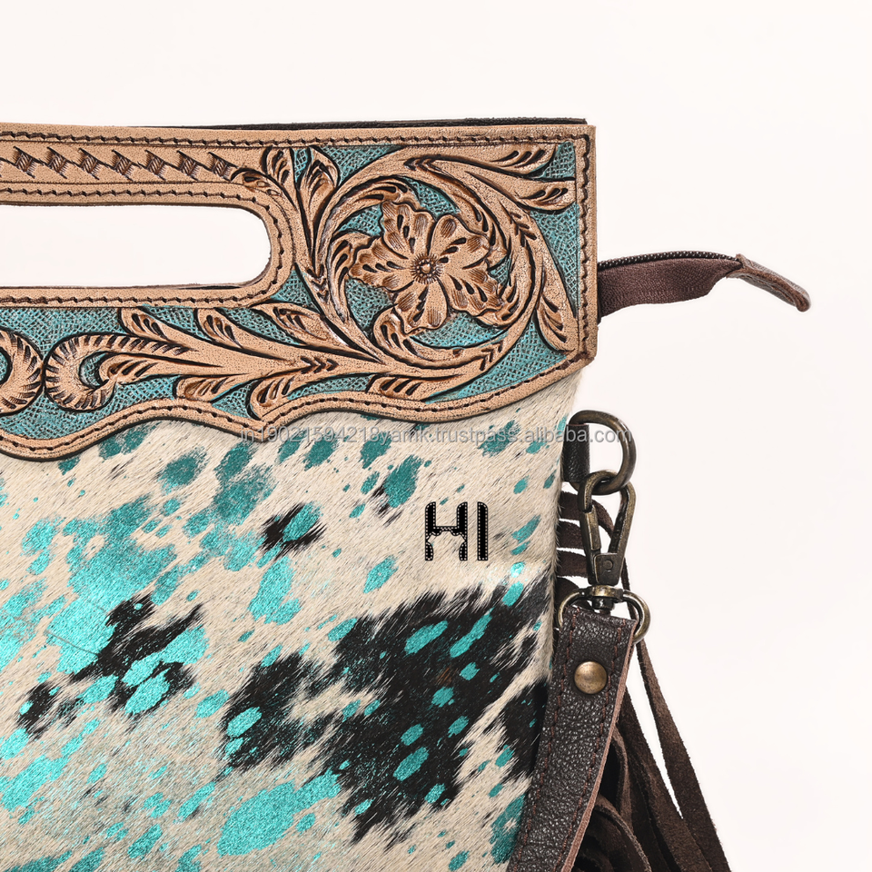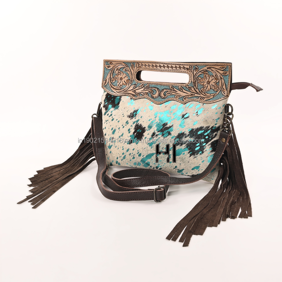 Western Bohemian Cowhide Hair-On Leather Crossbody Bag Vintage Shoulder Handbag for Girls