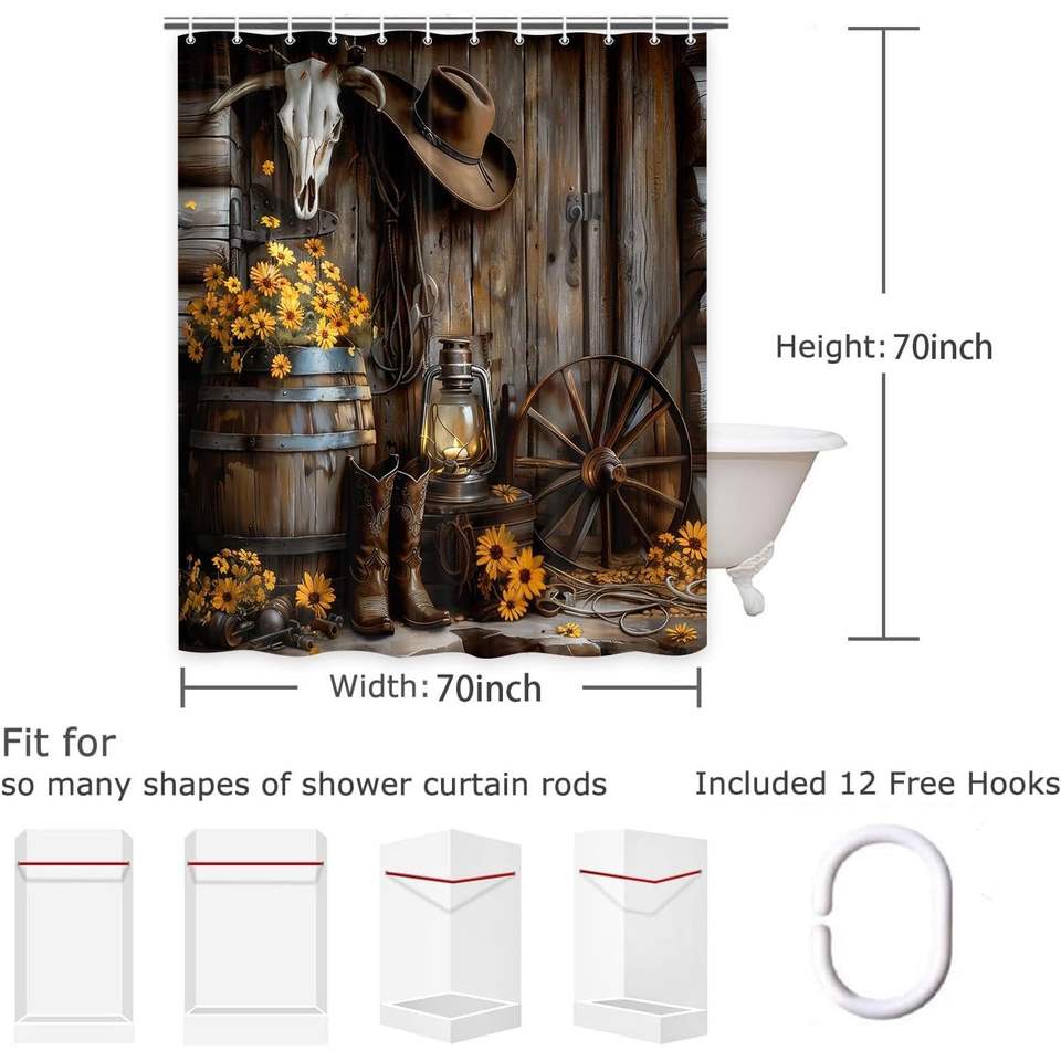 Western Cowboy Shower Curtain Farmhouse Barn Door Design Boots Southwest Country Ranch Style Polyester Home Decor for Bathroom
