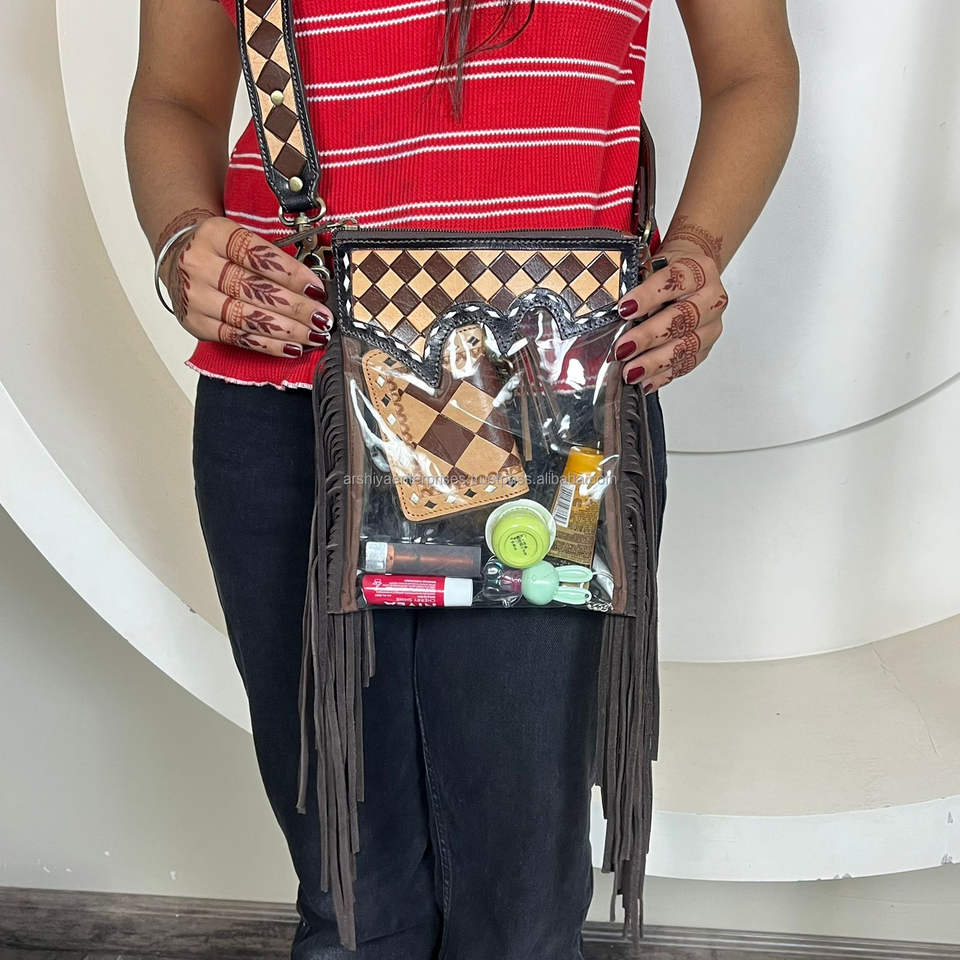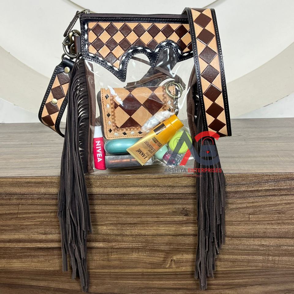Product name:Handcrafted Clear Stadium Fringe Crossbody Bags