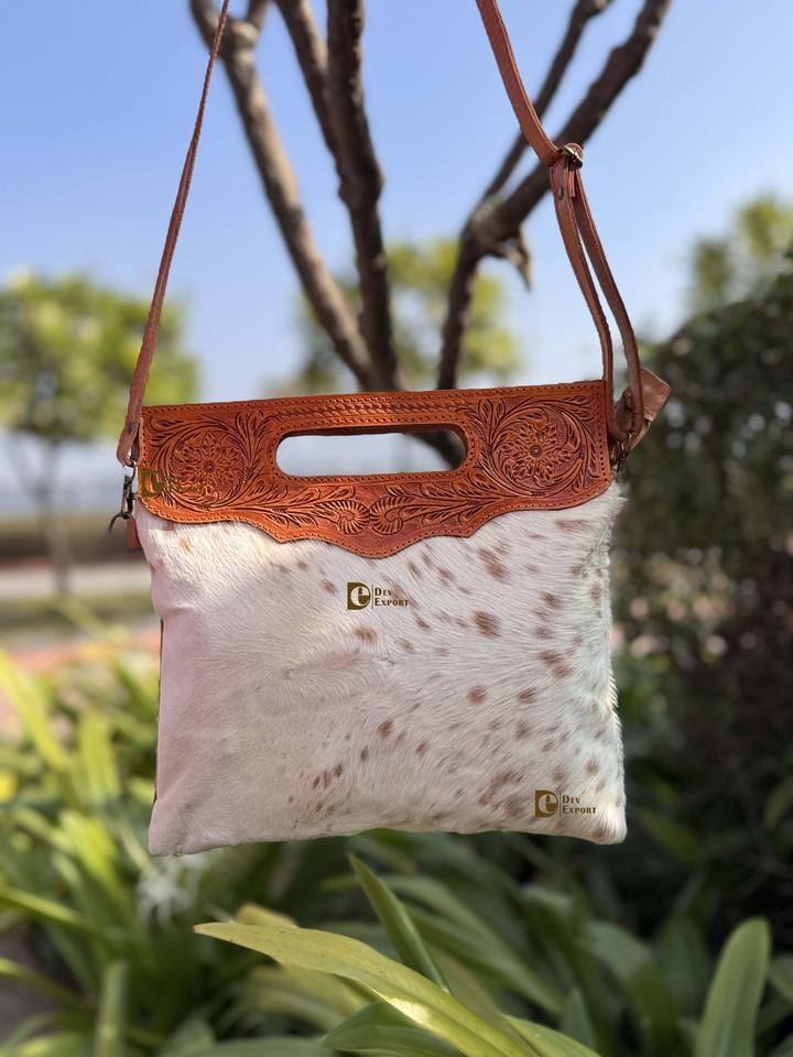 Western Cowhide Fur Hand Tooled Leather Handbag Stylish Collection Sling Bag Carving Bohemian Bags Hot Selling Bags for Women