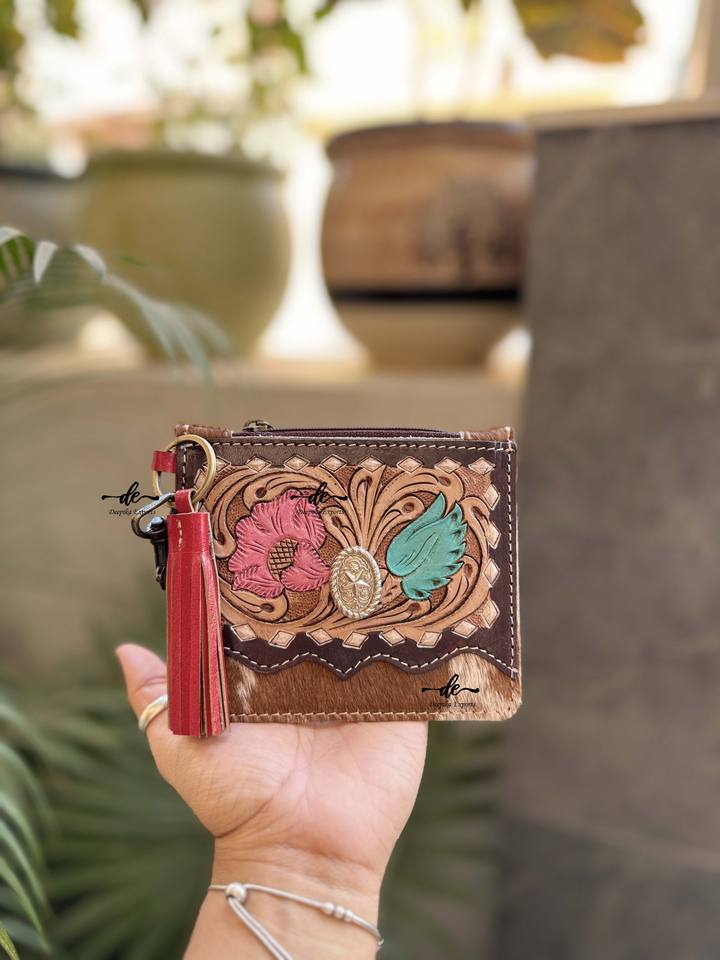 Western Cowhide Fur Leather Coin Purse Stylish Clutch Wallet Purse Hand Tooled Leather Western Style Unisex Clutch Coin Purse