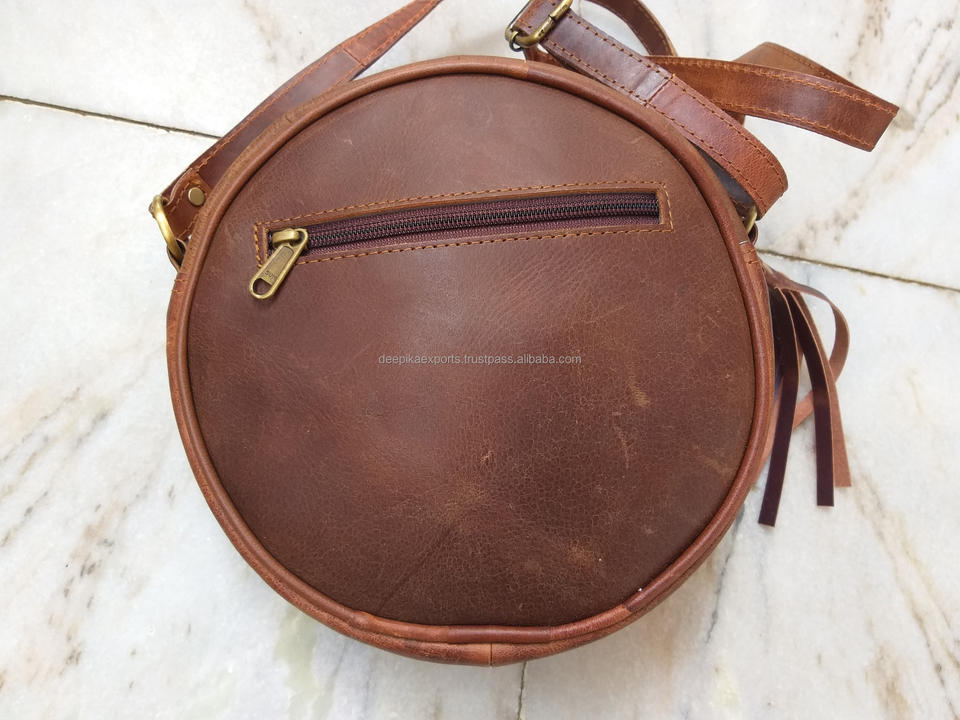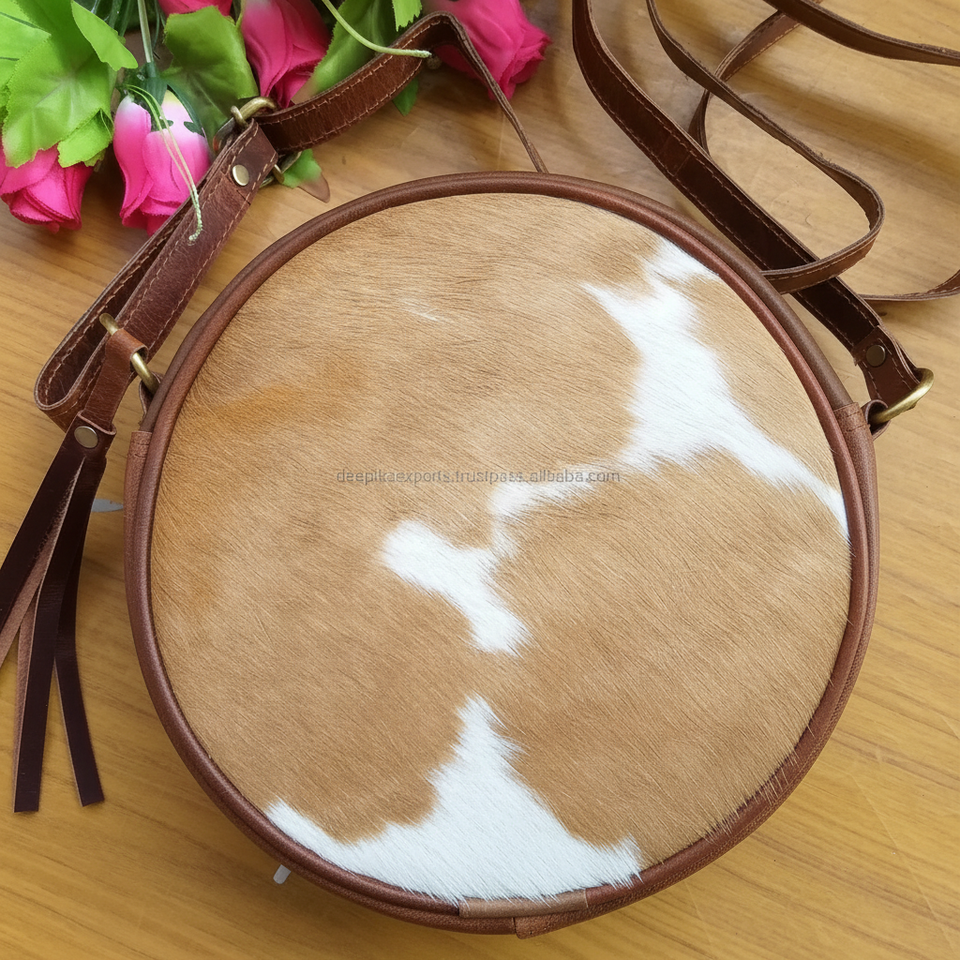 Western Cowhide Fur Leather Round Shape Handbag Stylish Multi Purpose Women Sling Purse